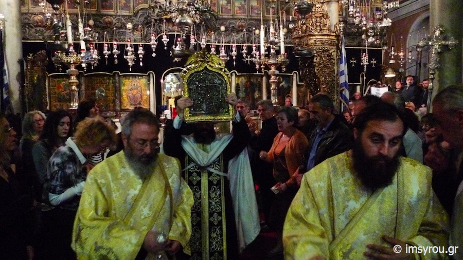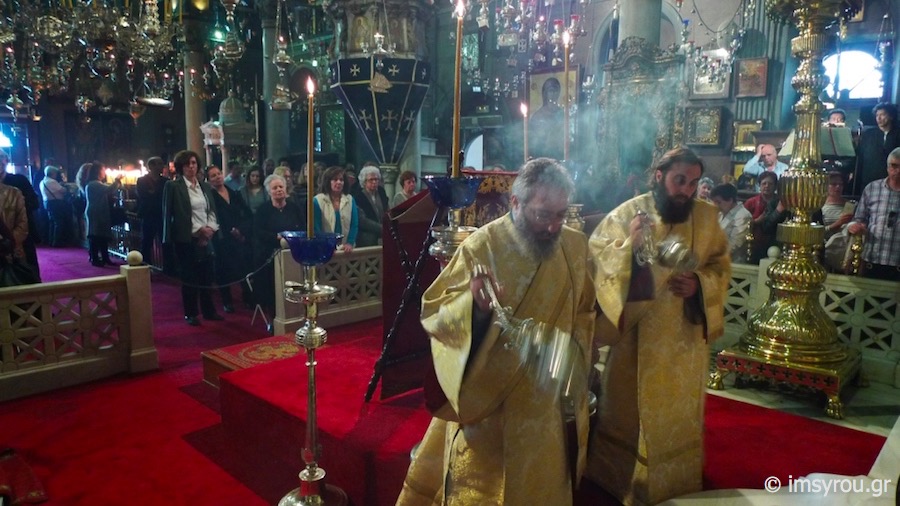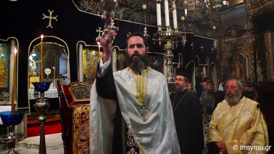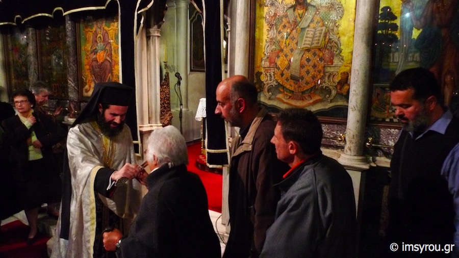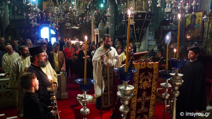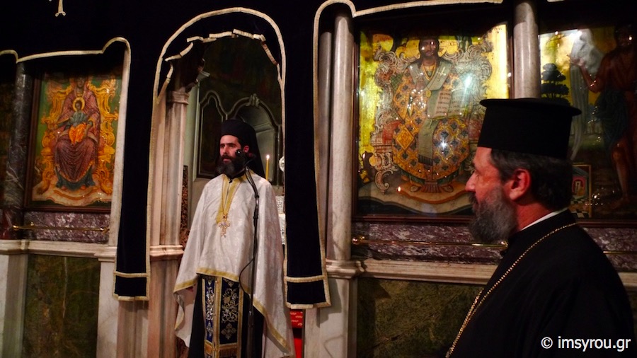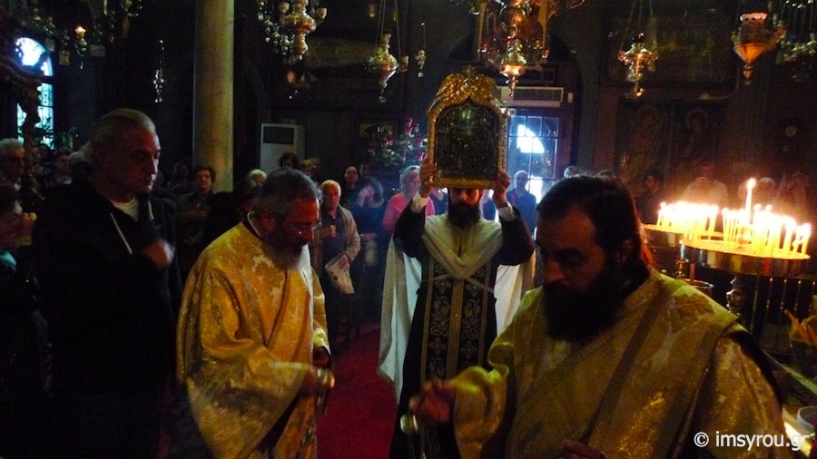 Της ιεράς Ακολουθίας προέστη ο Πανοσιολ. Αρχιμανδρίτης Βαρνάβας Θεοχάρης, Γραμματεύς της Συνοδικής Επιτροπής Θείας Λατρείας και Ποιμαντικού Έργου και Προϊστάμενος του Ιερού Ναού Αγίου Ελευθερίου Άρεως Αθηνών, ο οποίος κήρυξε τον θείο Λόγο, συμπαραστατούμενος υπο των Ιερέων και Διακόνων του Ιερού Ιδρύματος, με τη συμμετοχή πλήθους προσκυνητών από πολλά μέρη της Ελλάδος αλλά και του εξωτερικού.
